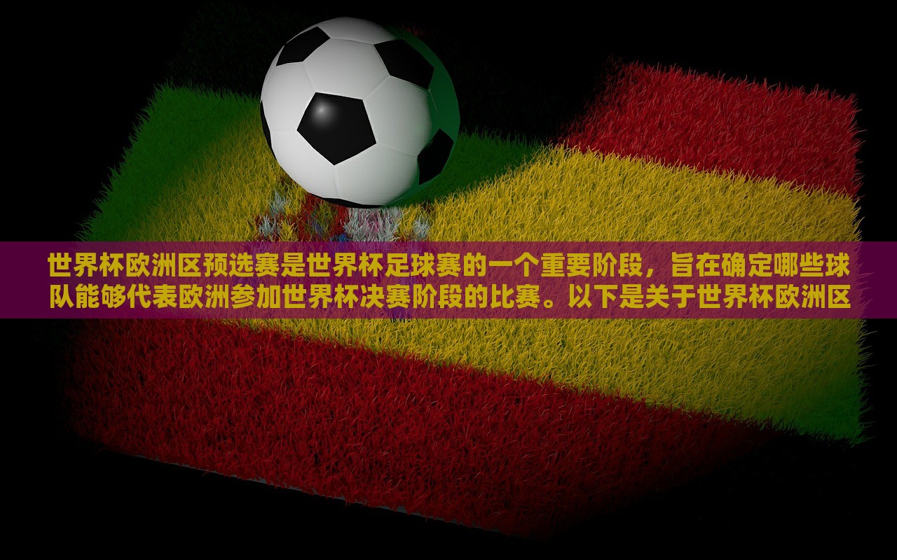 世界杯欧洲区预选赛是世界杯足球赛的一个重要阶段,旨在确定哪些球队能够代表欧洲参加世界杯决赛阶段的比赛。以下是关于世界杯欧洲区预选赛的基本信息